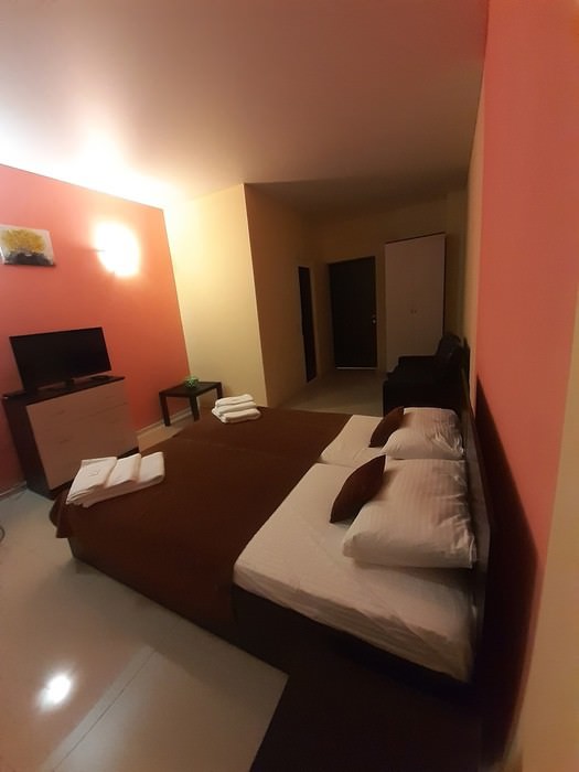 Пятиэтажная гостиница с лифтом размещена в 200 метрах от моря, на тихой улице без гулких баров и кафе. Вас ожидают комфортные стандартные, семейные и люксовые номера. В их все есть нужное для комфортабельного отдыха: сплит-система, беспроводной Wi-Fi, современная бытовая техника, ванные комнаты с косметикой и балкон.